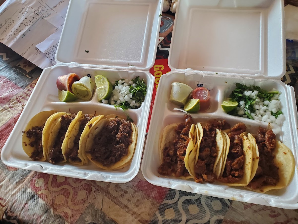 There is enough parking and mostly everyone waits in there car for there order. Saturday is preety full can take up to 30-40 minutes for food. Friendly and patient as we were new we didn't know what to order. Has tables where you can sit outside , they have glass sodas and aguas frescas like horchata. Ordered a Burrito with chile relleno and shrimp first the burrito was big and it was so tasteful did not disappoint ! next time I need to try there Gobernadores tacos! Family tried asada tacos they loved that it didn't have a lot of fat and enough meat in each taco for tortilla size. Al pastor burrito was also really good with red sauce that is on point! Ok let me go finish eating my big burrito from last night go order yours