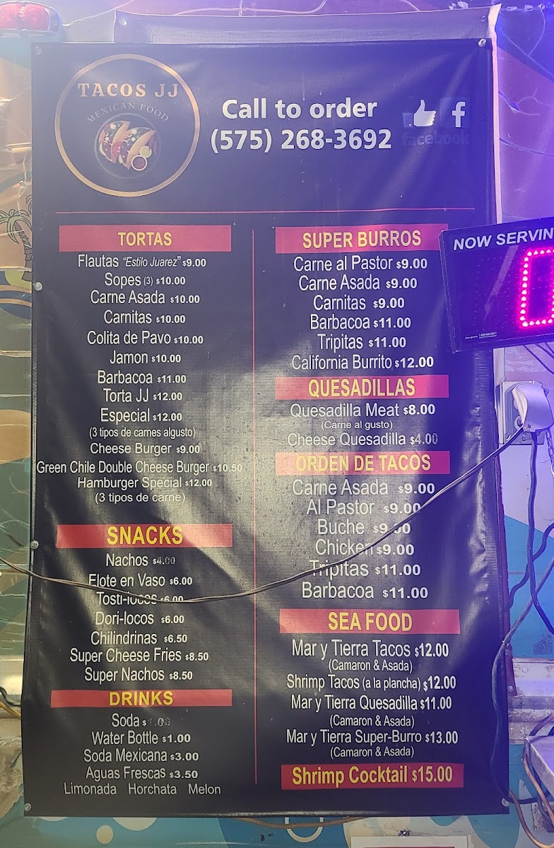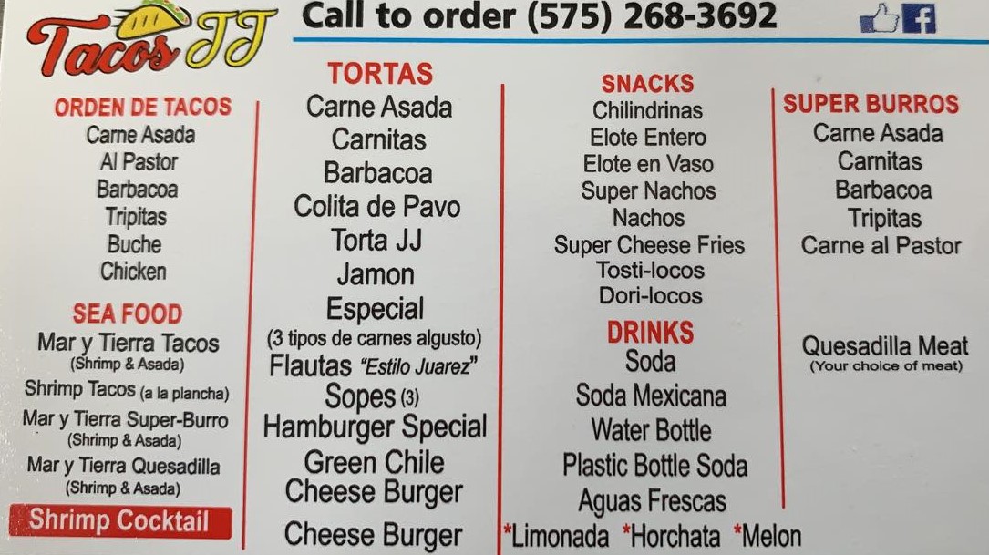 Tacos JJ Menu